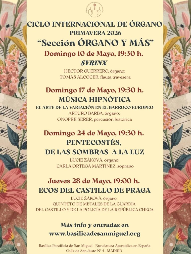Todo el Ciclo Internacional de Órgano en la Basílica. Más información y entradas en nuestra página web: www.basilicadesanmiguel.org